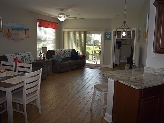Come view this beautiful end unit condo located on the first floor in the Village of Queens Harbour. This unit has been meticulously maintained and updated as needed. This unit has an open floor plan which is bright with an abundance of natural light. This unit feels private when sitting on the screened in porch overlooking the lake. There are blinds you can lower for more privacy. The unit is surrounded by beautiful foliage. The flooring is tile throughout the home, and it looks like wood floors. The kitchen has granite countertops along with plenty of storage. There is custom made 2-inch Levelor blinds on the windows. The pool is just a few short steps away. There is a grill with picnic tables located at the end of complex. Queens Harbour is located centrally near shopping along with Market Common, restaurants, and just a few short miles to the beach.