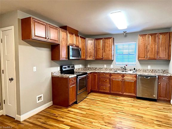 Sweetness and opportunity await you in this move in ready 3 bed/2 bath home in Mocksville! Enjoy the stunning wood floors that flow throughout the kitchen, dining and great room. Spacious primary with large walk in closet that has great shelving units to keep you organized. Primary bathroom features a large dual sink vanity and shower. Carpets in the bedrooms, tile flooring in the bathrooms and laundry room. Great patio space in the back to enjoy these fall evenings.
