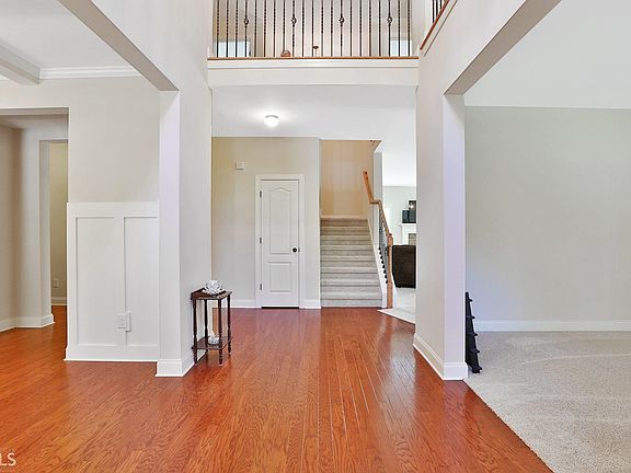 - Interior: Foyer - Entrance, Ceilings 9 Ft Plus, Double Vanity, Pulldown Attic Stairs, Separate Shower, Walk-in Closet, Garden Tub, Cable In Street, Ceilings - Trey, Hardwood Floors, Carpet, Tile Floors, Foyer - 2 Story