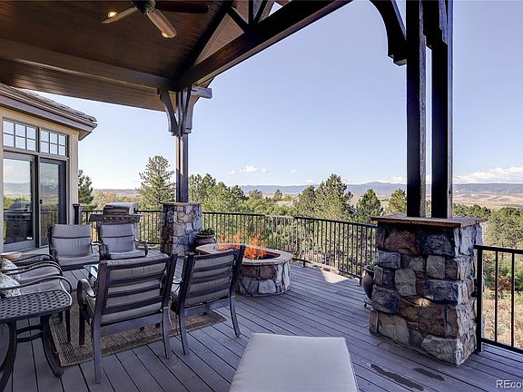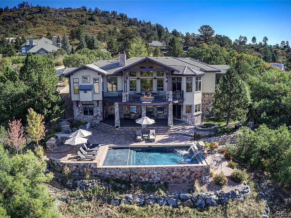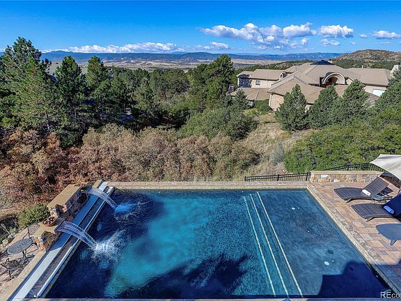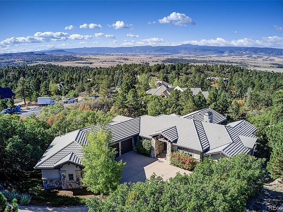 Incredible front range views from this spectacular home in the exclusive, gated Village at Castle Pines neighborhood. Perfectly perched high on the bluff to take in the stunning views of the mountains as well as the fabulous 18' X 30' custom pool. The entertaining possibilities are endless throughout this gorgeous property. The newer pool has beautiful stone flatwork and water fountains and the custom in-ground 12-person grotto spa is the perfect spot to watch the sunset. This home also comes with the rare opportunity to apply for membership to the Country Club at Castle Pines with immediate privileges upon close. Skip the 2+ year wait! (All fees and initiation are at the expense of the buyer and must go through the membership vetting process.) Inside this gorgeous home, the floor-to-ceiling windows frame the incredible views and the open Kitchen and Great Room are perfectly sized for comfortable entertaining. The main level Primary suite is tucked privately on the North side of the home and the rare main level guest suite is on the South side of the home with a minimal threshold from the garage for multi-generational living! Rounding out the main level is the oversized office with sitting nook and private dining room by the foyer. In the lower level, the private views over the pool to the mountains are absolutely stunning. So many entertaining options from the billiards room with custom wine cellar to the theater room to the incredible bar to the art studio or workshop with a separate entrance down from the garage! Three additional guest bedrooms have full windows for light and egress. This gorgeous home has everything needed for a perfect Colorado retreat even down to the oversized 4-car garage and heated driveway! Call today for your private or virtual showing! **Survey and Floorplan in supplements**