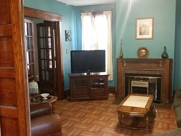Lovely all brick 4 or 5 bedroom home w off street parking, detached garage, covered flagstone patio and a nice sized backyard, the finished 3rd floor is a great Family room or Man cave but can serve as the 5th bedroom if needed! The Large (15x13!) Entry served as an office, the beautiful woodwork trim and staircase make quite a statement, and hardwood flooring throughout! Beautiful chandelier in the dining room, pocket doors open, 10ft ceilings! Large unfinished and usable basement, perfect for storage and workshop! A gas tap exists to put in a gas stove if desired, and the living room fireplace has an easy tap in to gas as well! Full bath 8x6 with ceramic floors, and lower level has toilet and walk in shower as well. Home Warranty Available!