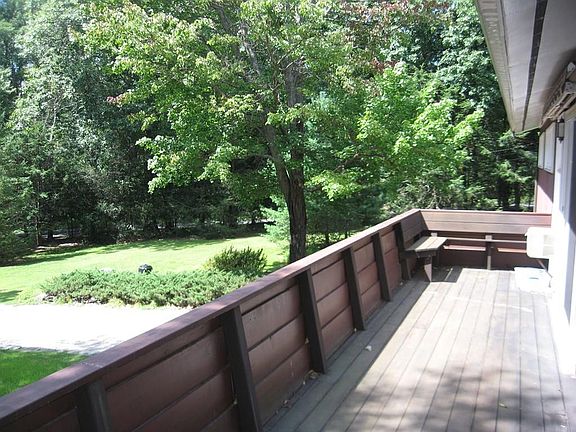 Fantastic 4 Bedroom home with two full baths. One owner home that is first time to the market. Cathedral ceilings, gorgeous fireplace in living room and another fireplace in the lower level rec room/family room. Very private setting yet very close to everything you need in town center. Slider from dining area to fabulous stone patio. Wrap around upper level deck with access from Master Suite and from Living room for those great evenings to just sit outside and enjoy the sounds of nature.