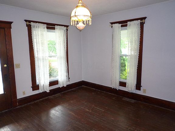 Enjoy sitting on the covered porch in the quaint village of Bremen. This 3BR 1BA Cape Cod offers great old character with original hardwood floors, woodwork, and a winding wood staircase. Entry level laundry room with storage. Window seat with storage in the dining room. Stove is currently electric in kitchen, but could be gas. Available gas hookup in living room for ventless gas fireplace. Upstairs has high ceilings with walk in closets in 2 of the bedrooms, attic access with additional storage area. Sliding glass door in the dining area leads to a fenced in yard with a paver patio, detached 1 car garage with alley access & electric, additional shed with loft & electric. Updates include central air in 2018, outside was painted 2 years ago, fresh paint on inside.