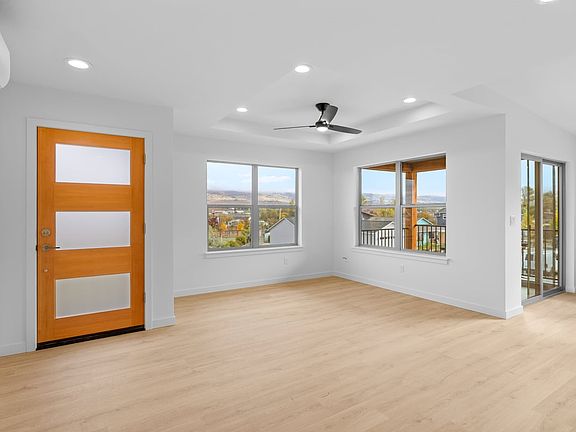 This modern space is filled with natural light from expansive windows, offering beautiful 360 views of the surrounding valley and mountains. The open floor plan creates a bright, airy feel that flows seamlessly to a spacious covered balcony perfect for relaxing or entertaining year-round.