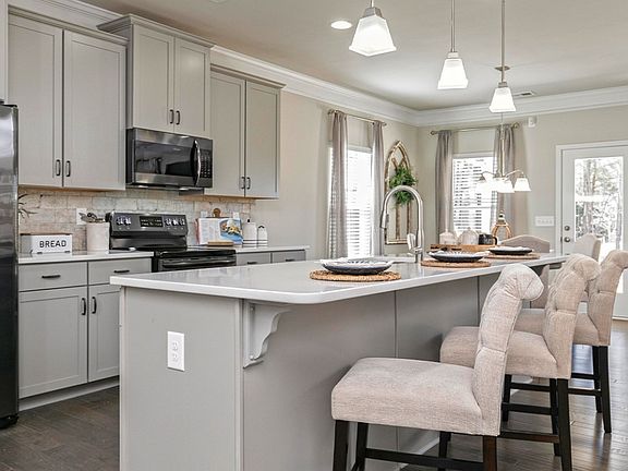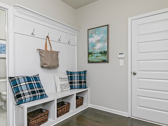 The James plan, by Smith Douglas Homes,. The home features a large dining room, well appointed kitchen with generous dedicated pantry area with an first floor bedroom and a full bath down, the large and family-friendly mud room off the garage gives the space you'll want to drop your belongings at the door on the way into the home. Amenities upstairs include a spacious and convenient laundry room , an open loft and a well appointed owner's suite with sitting room.