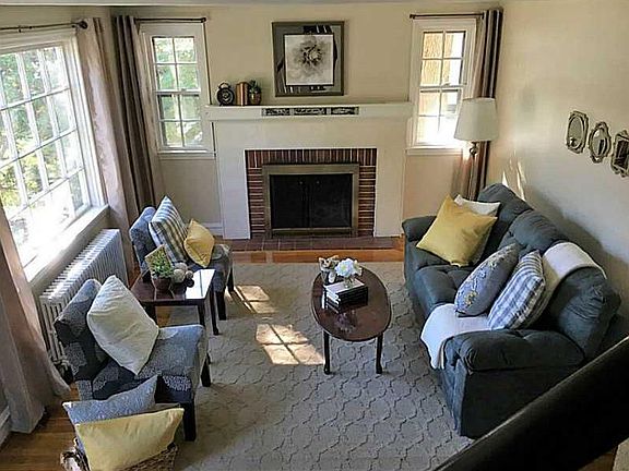 Charming renovated cape, new roof & paint. Hardwood, ceramic, stainless appliances, wood fireplace, open kitchen/family room, slider to patio, 3/4BR, 2BAs w/W/D,. 2nd fl BR w/deck. Oversized landscape yard. Seller to credit Buyer $5K closing costs.