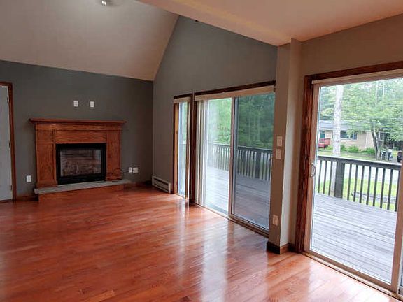 Superior Value Contemporary Chalet w/ full unfinished basement! Features hardwood flooring in the bright open floor plan Living Room and Dining Area w/ cathedral ceilings. The living Room has a Propane fireplace and direct access to the large wraparound deck for outside entertaining and relaxation. The open floor plan continues to the kitchen w/ breakfast bar open to dining area. The Master BR Suite with private bathroom is on the first floor! Second Floor includes two more Bedrooms, a second full bathroom and large loft for additional living space or perfect office area! The large exterior decking overlooks the flat and grassy front yard. This home is a short drive to the town of Milford, PA and easy commuting to NY and NJ. Come see before this one is gone! Built less than 10 years ago!