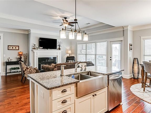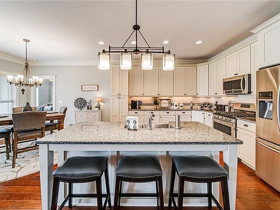 - Kitchen Features: Breakfast Bar, Pantry, View to Family Room, Stone Counters, Cabinets White