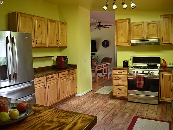 Welcome to your very own piece of paradise! Large double wide on 2 acres at a dead end road! Shop with wood fireplace, loft, cement floor, water and power. RV parking and hook-ups! Green house with sprinkler system, raised garden beds with sprinkler system. Storage shed, chicken coop with area for chickens to exercise! Fruit trees, vegetable garden, partially fenced yard. 3 bedroom, 2 bath with so many extras! Enjoy relaxing on the covered deck with a beautiful territorial view!
