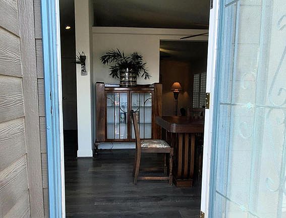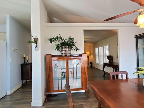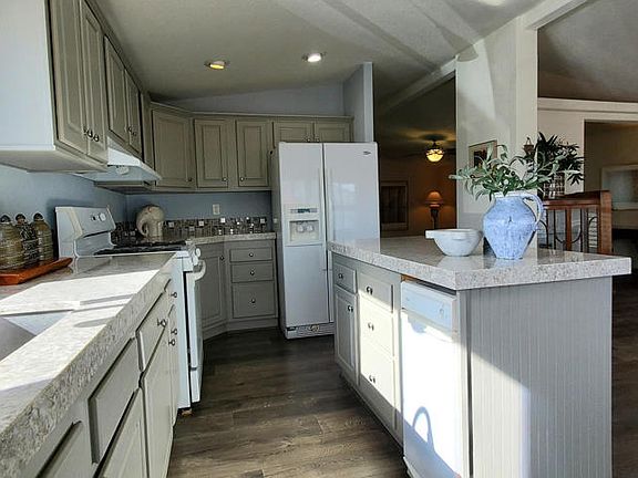 This very pretty home is located in a senior community and in the middle of the park, convenient to both gates and quiet streets, It has two bedrooms and a huge den leading out to the fenced in patio. The side yard faces south so you get the warm sun in the winter and the shade in the summer. The pictures show you it is a free flowing home with shutters in most of the rooms and dual pane windows. The kitchen is beautiful with a wonderful island and great storage space. The bathrooms are light and airy. The garage is spacious and full of cupboards and shelves. The curb appeal is beautiful. Be sure to stop at the office and pick up an application. To qualify for residency you must have a FICO score of at least 740 and proof of income single or jointly of $2800 per month. One dog under twenty pounds is welcome. We have new delightful managers and it is a pleasure to live in this park with many activities to participate and meet new friends.
