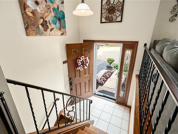 This well maintained home in Brookmeade is situated at the end of the cul-de-sac. Beautifully landscaped & a welcoming entry w/the 6 panel front & full glass storm doors. Two story entry w/iron railing welcomes you in. Spacious living room has double windows & dining room w/slider to deck making it a light & bright space. The 23x12 deck is home to the hot tub & eating area. Off the deck is a 16x7 area w/patio stones. Bordering the backyard & 11x9'10" shed are woods making this a fantastic getaway! Back inside the eat in kitchen offers wood cabinets & a window over the sink. Down the hallway you will find both a hall & linen closet, full bathroom & 3 bedrooms. Primary bedroom has a 5x4 walk in closet. Hardwood floors. Finished lower level game room w/fireplace, built in shelving & an over 6 ft window letting the light shine in. The pocket door in the powder room leads to laundry/utility room. Wide garage w/2 garage doors and shelving. Minutes to 79, 279 & shopping - neighborhood events.