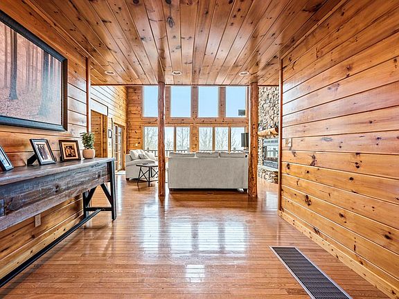 Custom built log home! This beautiful cabin is perched upon over 3 acres with amazing views. Large wrap around deck to relax, take in the wooded surroundings, or just enjoy the peace and quiet. Lots of windows to let in lots of natural light. Spacious open main floor with a floor to ceiling stone wood burning fireplace, a loft for extra room, and a main level master suite. Large finished basement with endless possibilities. Seller just had exterior stained and painted at the start of summer. Decks have also been updated with a fresh coat of paint and stain. The home also comes with an extensive water system which includes a reverse osmosis system in the kitchen, new water softener, and a UV bacteria light. The subdivision has 2 boat docks for residence to use. Used as a second home. It is a definite must see! SEE ADDENDUM