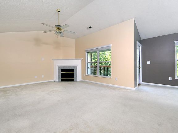 Contemporary top floor condo unit with cathedral ceilings and fireplace. Master bedroom with adjoining bath and walk-in closet. Remodeled hall bath. Balcony overlooks woods. Access to community pool.