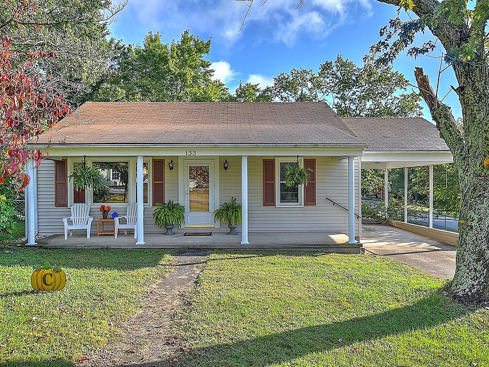 Cute doll house on a level fenced lot. Lots of updates through the years. Nice covered front and rear porches. Replacement windows. Carport and unfinished basement. Storage building.