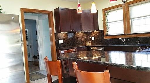 Beautiful 3 Bedroom Colonial on 10,000+ Square foot lot. This house has it all! The kitchen was recently updated with beautiful Red Cherry Cabinets, Granite and a beautifully tiled floor. Pristine hardwood floors throughout the living room and bedrooms add to the beauty of this meticulously kept home. All of the bedrooms are very generously sized and the master bedroom features a large walk in closet. The basement is finished and has a full bath. Potential as an inlaw apartment. All lighting is on a sensor/timer system. There is also a decent sized office on the first floor. Large Mohogany Deck on rear of house. This is a beautiful home!! Close to MBTA. Very Close to Horace Mann School.