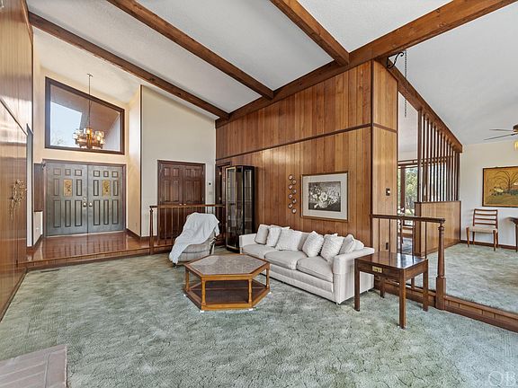 Beautiful Mid Century Modern ranch located on 3.37 acres. Enjoy the privacy that comes with backing up to treed wetlands with the rear property line fronting the Pasquotank River. As you step inside, the soaring ceilings of the living room embrace you, creating an atmosphere of spaciousness. This open concept layout is perfect for entertaining—whether it's a formal dinner in the dining room or a casual brunch in the eat-in kitchen, every corner of this home exudes warmth and hospitality. The kitchen is a chef's dream, boasting an abundance of cabinets ensuring that every culinary tool has its place. No more clutter, just a seamless flow of cooking and creativity. With 2 bedrooms, office/bonus room and 2.5 bathrooms, there's ample space for relaxation and rejuvenation. Large laundry room & keeping room just off the kitchen. Step outside onto the expansive deck, where memories are made. And for your guests, a detached guest home awaits, offering a cozy studio setup, complete with a kitchenette and private bathroom—a true haven for visitors or a peaceful workspace.