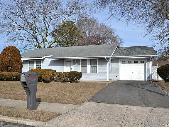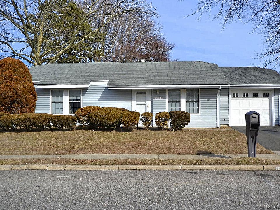 Introducing this three-bedroom Ranch located in a desirable development within the Sachem School District. Features include, but are not limited to, a formal living room, eat-in kitchen with newer refrigerator, dining area, den, walk in closet in primary bedroom, gas heat and cooking, new, separate hot water heater, and attic storage. Front and rear in-ground sprinklers, plus patio in the fully fenced, large yard complete the exterior. Home needs some cosmetic updating but offers endless opportunity!!