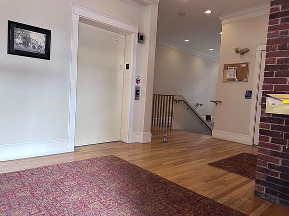 Beautiful one floor condo with 2 bedrooms, 1 bath and gleaming hardwood floors throughout. This end unit is immaculate with upgraded kitchen appliances and an in-unit full size washer/ dryer. Parking is below building in gated garage with one space assigned to the rental. Newly redone deck off living room for outdoor dining. Loads of windows afford the space with natural light and remote controlled shades provide privacy. Unit can be rented furnished. This condo is in the historic Captain Andrew Hussey House with locked external entrances, indoor mailboxes, and an elevator directly to parking. Walking distance to downtown Portsmouth shopping and night life. Absolutely NO smoking. Small pets are negotiable. Renter requirements are a credit score 650+, monthly income of at least 2.5x the rent, and two last paystubs. Each applicant over 18 who will reside at the location must be on the application and have a background and credit check. The tenant pays gas, electric, cable / internet. We require one month security deposit and first months rent at time of lease signing. Condo fees are included in the rent. Lease duration is 12 months.