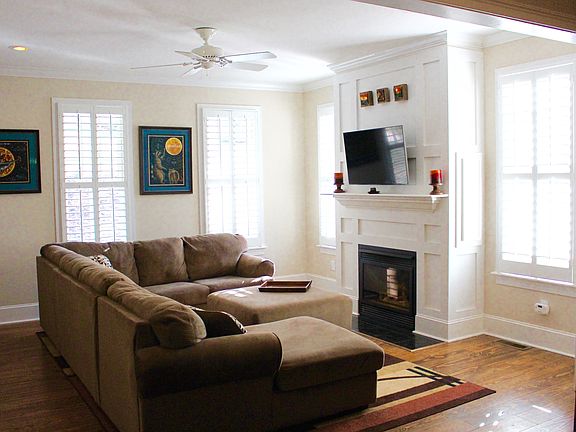 Highly desirable neighborhood with 4br/3.5b. Master br/ba on main level with custom closet, separate shower, garden tub and dual vanities. Wide yellow pine flooring throughout as well as plantation blinds. Den and basement have natural gas logs. Open floor plan. Kitchen has SS appliances w/gas range and large island. Screened in porch, half bath and laundry/mudroom adjoin kitchen. Upstairs has three bedrooms and full bath. Basement has entertainment room, wet bar, full bath, den, storage room and workshop. Large fenced in back yard with covered patio, play yard, and fire pit. Natural gas Generac generator. For sale by owner 2% offer to buying agent.