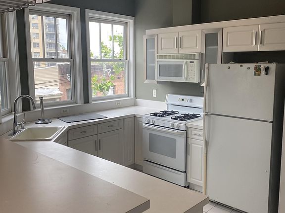 NO BROKER FEE and rent includes one (1) garage parking spot Beautiful Spacious 4th Floor CORNER 1040sf apartment with 2 large bedrooms and 2 full bathroom. Central Heating and Cooling, RENOVATED master bath with double vanities, premium quartz countertops, rain shower, heated towel rack. Large 6' tall windows provides abundance of NATURAL LIGHT, hardwood flooring, open kitchen, recessed LED lighting, and crown moldings! Each bedroom has an abundance of storage with 2 closets designed with organizers and plenty of closets! Beautiful 4th Floor CORNER Apartment located in a friendly 8 unit community. COMMUTER'S DREAM ~ only 1 block away from light rail! Enjoy living in the heart of Hoboken! Building fully equipped with elevator and door intercom! Spacious 2 bedroom, 2 full bathroom unit has renovated master bath with double vanities, quartz countertops, rain shower, heated towel rack, and LED lighting, open kitchen, large 6' tall windows, hardwood flooring, recessed lighting, and crown moldings! Each bedroom has an abundance of storage with 2 closets designed with organizers and plenty of closets! All applicant's are pre-screened; Non-Refundable Application Fee $75 per applicant; 1.5 months security deposit required upon signing lease; 12 month lease (no short term option); PARKING (deeded spot in garage included); Smoke-Free and No pets preferred