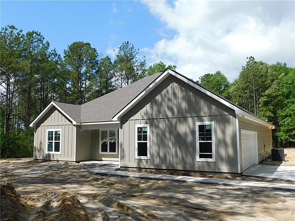 Almost complete and located in the Crawford community on 3.4 acres, this wooded lot offers privacy and space. Large central living room with split bedroom floor plan. Partially open kitchen has a Quartz-topped bar with seating, breakfast room with double windows, lots of cabinet and counter space and stainless steel appliances. The primary suite includes a spacious bath with separate closets, Quartz double vanity, a soaking tub and separate shower. Three additional bedrooms complete the living spaces in this one-level home. Rear covered porch just off the kitchen with a wood burning fireplace. LVP flooring, Quartz countertops and matte black fixtures throughout. All electric home with blown insulation is energy efficient. One-year termite bond included. Plans and specs subject to change without notice at builder's discretion.