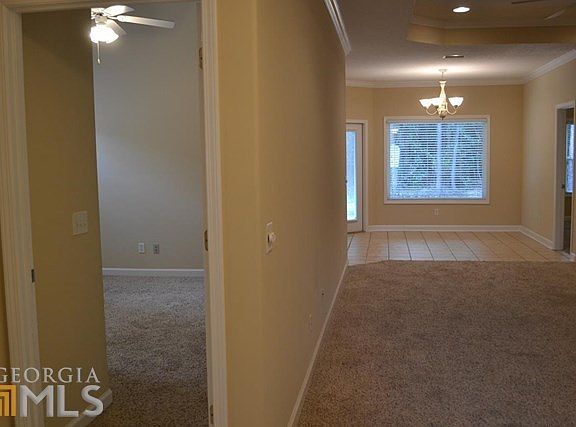 This is a nice home near cul-de-sac. Large driveway and home backs up to the woods. It has 3 bedrooms, 2 baths, and 2 car garage. Master bath has jetted tub and separate shower with large wic. Large rear porch. Split plan with tile in kitchen, dining and bath rooms. Community has pool, grills, and small gym.
