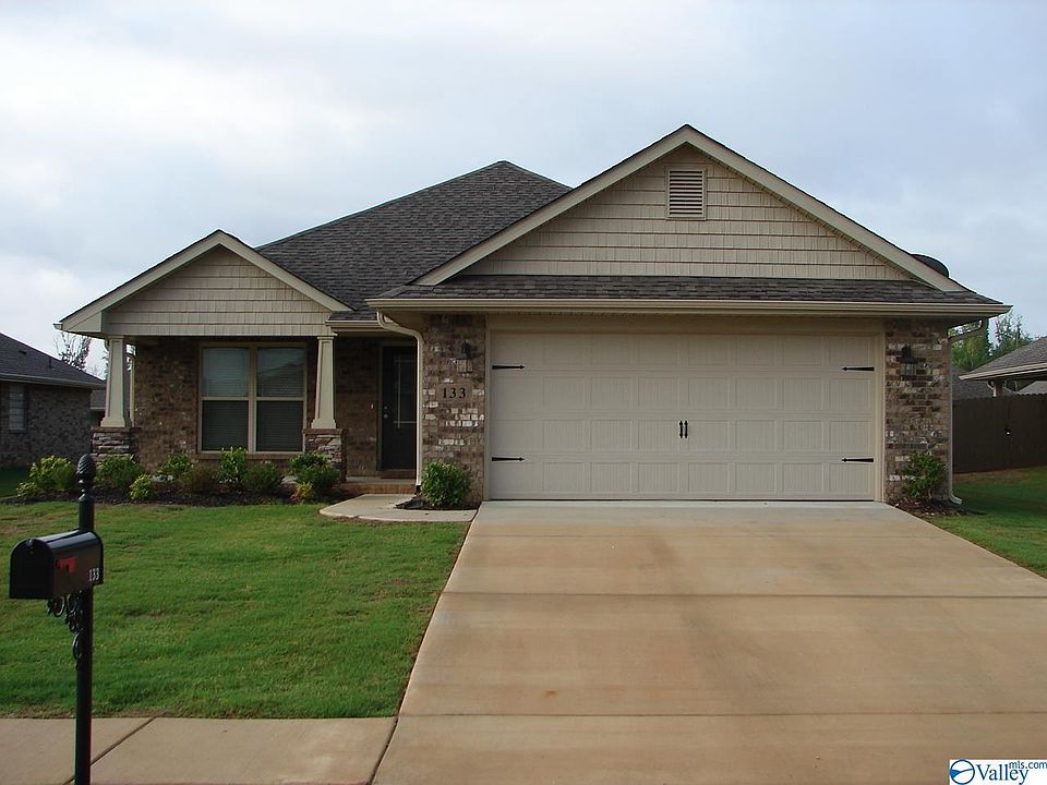 BEAUTIFUL FULL BRICK HOME with an open floor plan. 4 bedrooms + study /2 full bathrooms. Kitchen features granite counter tops, stainless steel appliances (refrigerator to remain), nice pantry and island. Family room has hardwood floors and is open to the kitchen. Isolated master suite with trey ceiling and glamour bath with large walk in closet. Out back enjoy well maintained level lot with privacy fence and covered patio. Convenient to the airport, I-565, restaurants and shopping. Zoned for James Clemens High School. This home has been well maintained and is move in ready!