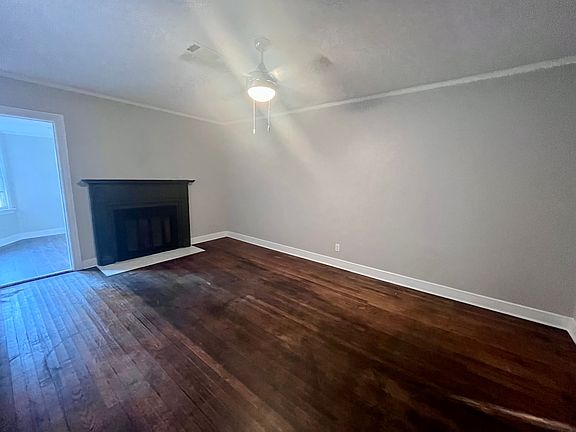 This freshly updated 2-bedroom, 1-bath cottage-style home blends vintage charm with modern updates in a quiet, established neighborhood. Featuring original hardwood floors, neutral interior paint, and updated lighting with ceiling fans throughout, the home also includes central heating and air for year-round comfort. The spacious living room offers a striking black fireplace mantle and abundant natural light, while an additional flex room provides perfect space for a home office, dining nook, or third bedroom. The kitchen features solid wood cabinetry with ample storage and a separate entrance. The bathroom includes updated fixtures, beadboard detailing, and a clean tub-shower combo. Laundry hookups are conveniently located in the hallway. Outside, enjoy craftsman-style shutters, a small front porch, a large yard, and a crushed gravel driveway for off-street parking. Rent is now $1200 with a matching deposit. Ask about our pet policies. Apply Now! Equal Housing Opportunity.
