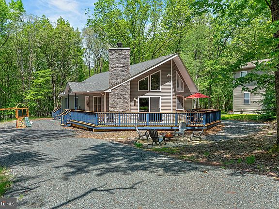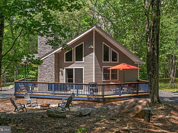 Experience the charm of this stunning A-frame home, newly built in 2022. This turnkey, fully furnished retreat with active STR permit offers 3 bedrooms, 2 full baths, and an open-concept living, dining, and kitchen area with soaring cathedral ceilings. The beautifully designed kitchen features granite countertops, a gas stove, bar seating, and ample space for entertaining. Enjoy the warmth of the stone masonry fireplace, relax on the front and rear decks, or unwind in the hot tub. The primary suite boasts an en-suite bath with a double vanity, a step-in shower with seating, and access to the back deck. With a spacious driveway, a playground set, and an active STR permit, this fully furnished property is ready for you to enjoy or generate income. Towamensing Trails has wonderful amenities including a beach, marina, clubhouse, tennis and basketball courts, ball field and playground. Don't miss this rare opportunity!