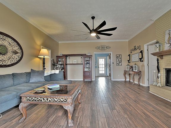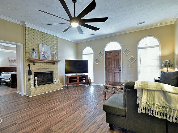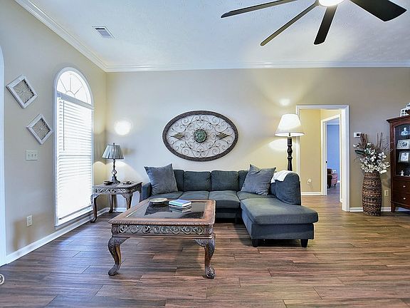 Move-In Ready in Huntington Hills Community! Want the privacy of the country without the commute? This property has picturesque water views and is only a five minute drive to grocery stores, retail shopping, and entertainment! Situated on a spacious lot with LAKE access & a floating dock! Single Level Home features Wood-Look tile flooring throughout the interior - no carpet! Cozy up on those cold winter evenings by the wood-burning fireplace in the living room. Private master suite with walk-in closet. The other two bedrooms are located on the opposite side of the home for added privacy. Double carport located in the rear of the home - which could also function as an additional patio space. The yard is completely fenced-in. Storage Outbuilding passes with the sale! Call to schedule your private showing today!
