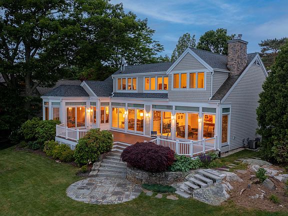 Back in the day, the seller took more than two years to find just the right home with an exceptional ocean view. Here it is! Your own front row seats from a full-length deck to watch lobster boats, sailboat races and all the major Piscataqua River traffic. A 180-degree vista that looks directly out at the Isles of Shoals and the New Castle breakwater—as awesomely impressive waves crash over on stormy days. And in front—a stretch of sandy beach! Almost every room takes advantage of this scenery, from incredible sunrises to the shimmer of the moon on the water. Lie in bed in the first-floor primary bedroom and watch distant lighthouse beams. Here are beautiful maple floors and a unique sitting/office area with views covering all Little Harbor Beach. Of course, there is a lavish marble bath with sauna. Elsewhere, the well-appointed open kitchen allows chefs to enjoy views as friends and family sit by a warm fireplace handcrafted from rare Atlantic Sea stones. Visitors enter the residence through an imposing foyer with soaring ceilings. Work out in the gym, relax with a book of your choice in the living room or entertain guests in a wainscoted dining room enhanced by tray ceiling light and triple crown moldings. Bring up your finest wines from the wine cellar notable for its Positano backsplash. This is an uncommonly beautiful residence that fortunately won’t take you two years to discover! Steps from the marina, Wentworth Hotel, country club and a short drive to Portsmouth.