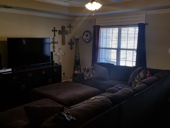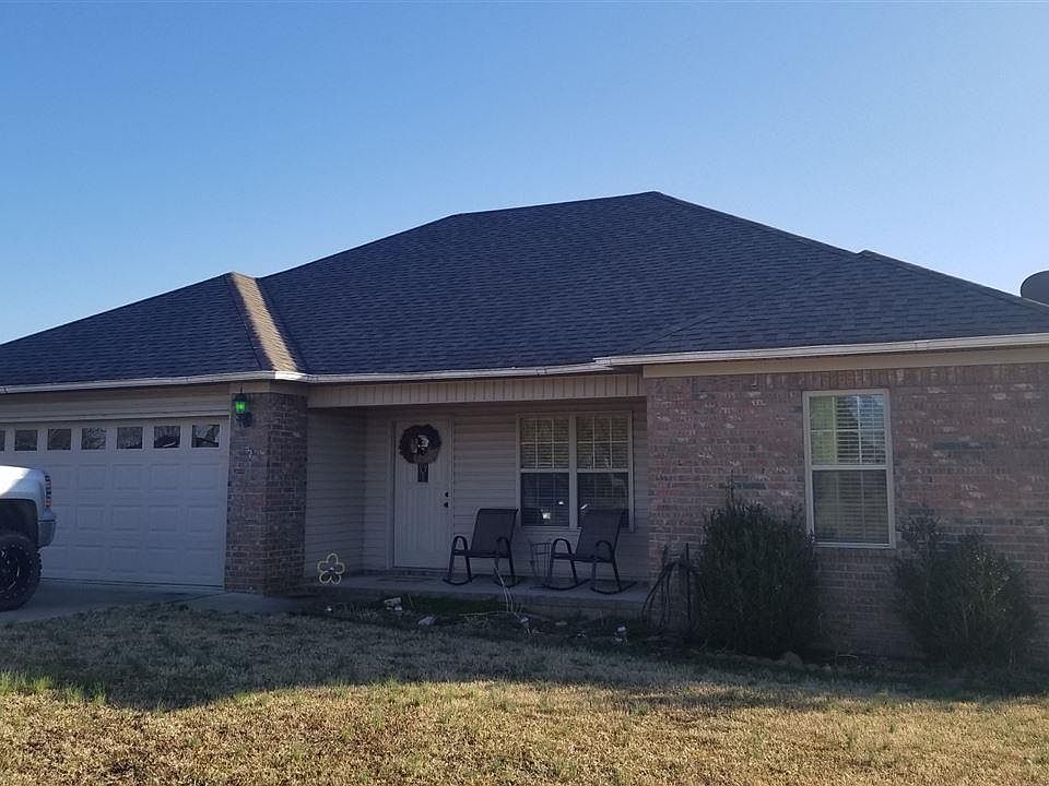 Country setting right on the edge of town! This 3 bed 2 bath home sits in a newer subdivision with pastureland right out the backdoor. Open floor plan with split master bedroom and tray ceilings with crown molding throughout. Very open kitchen and living room with laminate and ceramic tile throughout. There is a large lean to off the backporch and storage building in the back. Come see this great home!