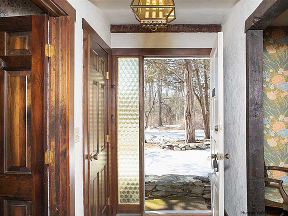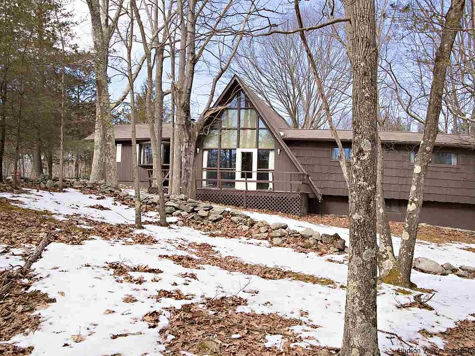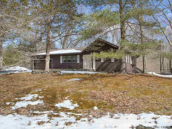It's Spring in the beautiful Hudson Valley...use your imagination to bring this 4 bedroom, 3 full bath unique A-frame contemporary into full bloom. Highlights include two brick fireplaces, two master bedroom suites, wide board and hardwood floors, and sited on a beautiful piece of property on a quiet country road...almost three acres. The flexible floor plan allows for many different possibilities, including the addition of a second kitchen and/or Air B&B possibilities. This home is filled with character and charm, with lots of nooks and crannies, built-ins, and a sweet loft. Deck overlooks peaceful, wooded backyard. Two car attached garage plus additional one car garage and plenty of storage underneath. Minutes to Rhinebeck; ideal for weekender or full time residence. A buyer with vision will transform this one into a beauty.