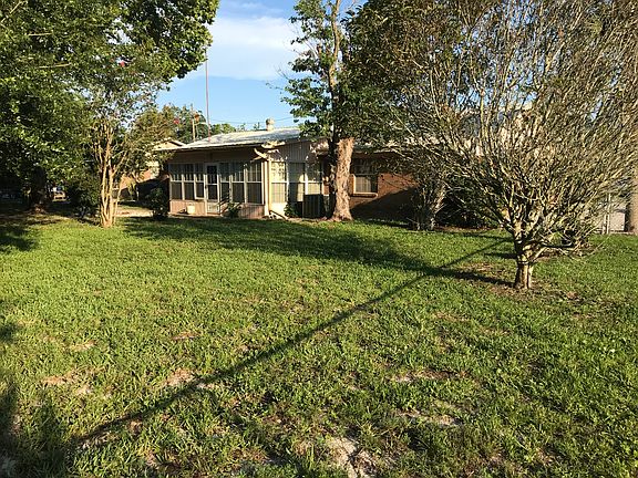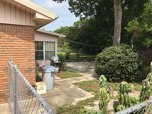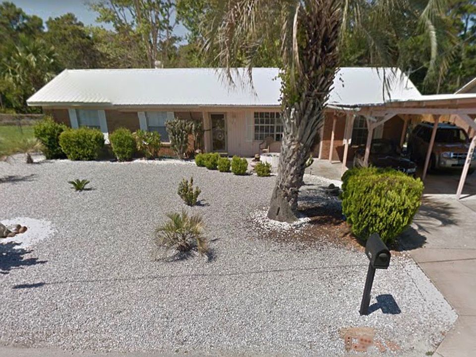 4 bedroom 2 bath house with over 1,600 sq. ft. has room for a large family at a great price. It has a stone front yard with palm trees for very low maintenance. A 4 car cement driveway and a 2 car carport. The backyard has a chain link fence with gates on both sides, one is a double gate for easy access of larger items. Back of lot is all woods. There are two outbuildings, one is a workshop with upper lofts for storage and the other is a greenhouse. All the main living areas have tile and the bedrooms are all carpet. The large master bedroom has a remodeled bathroom with a decorative stone shower with multiple shower heads. Over sized utility room with lots of storage cabinets. 200 sq. ft. Florida room would be great for entertaining. This house is close to Pier park & less than a mil