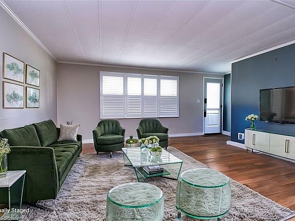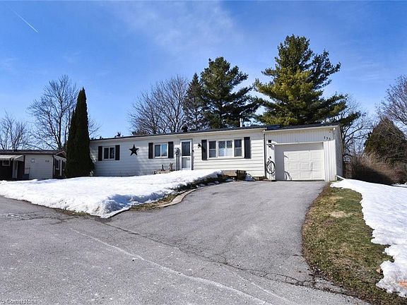 Exceptional setting for this spacious ranch style home with attached garage in the very desireable Beverly Hills Estates. Nestled on an oversized private crescent lot trimmed with shrubbery. loads of green space and a workshop with hydro plus a garden shed. The bonus is an attached garage with double wide ashphalted driveway and four car parking. Every room of this spacious home has loads of windows. The primary bedroom has an adjoining room presently used as an office. It has great potentiall for an ensuite bathroom plus a walk-in dressing room. There is a park residents committee offering a year round agenda of social functions. Postal boxes for mail delivery by the community centre. Just a short drive to highway access to Guelph, Waterdown and Hamilton. Possession date for this year round living home is very flexible - can be immediate or 30-75 days. Thanking you for your visits - flexible viewing hours.