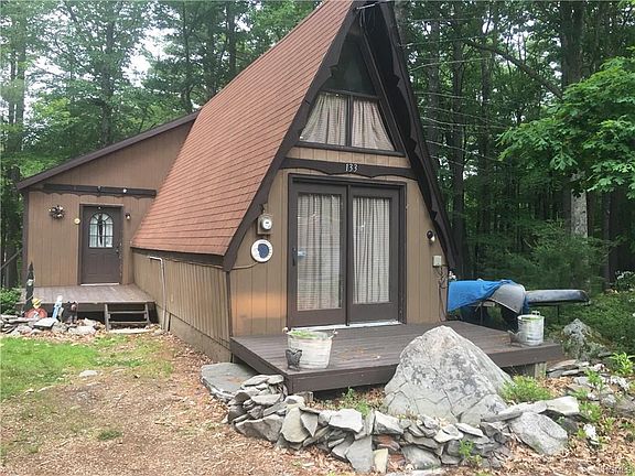 Down a quiet road, surrounded entirely by the sounds of mother nature, you come upon a beautiful & rustic A-Frame Cottage. This charming 2 bedroom loft, 1 bath has everything you need to house the entire family. Hardwood floors for an aesthetically pleasing feel & woodwork for unique finishing touches. Outside the home, a 2 car garage is spacious as well as practical. Above, an updated bonus room is the perfect guest bedroom, or art studio - with plenty of natural light. Complete with deck, enjoy the view of the trees as you get in touch with your creativity as you allow the beauty of Upstate New York to inspire your senses. And with Lake rights to Mohican Lake, a 250 acre motor boat lake, you can spend the afternoon enjoying a variety of water activities such as water skiing, fishing & swimming. Close to the sight of the original 1969 Woodstock festival, which is now the sight of Bethel Woods performing arts center, enjoy a variety of genres of music while still being close to home