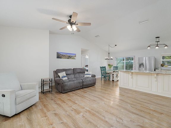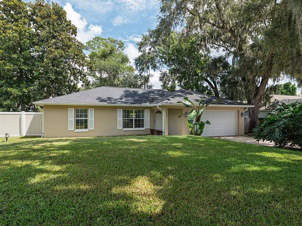 This beautiful 3-bedroom, 2-bath home is tucked beneath a canopy of mature oak trees, offering a peaceful environment. The property features a long driveway that not only provides ample parking but also has extra space for a boat. Inside, you'll be greeted by a bright, open-concept living area with vaulted ceilings and modern flooring that creates a seamless connection between the kitchen, dining, and living spaces. The kitchen features granite countertops, stainless steel appliances, and updated cabinets, along with a spacious island that's perfect for entertaining. Step outside to your private deck, ideal for enjoying relaxing afternoons or hosting weekend gatherings. Located just minutes from downtown St. Augustine, less than a mile from the Douglas Crane Boat Ramp, and only a few homes away from the Intracoastal! This move-in-ready home is a must see!