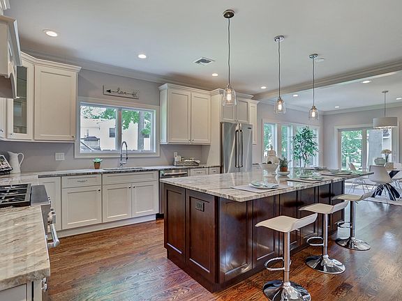 Beautiful new shore home with bright, sunny Southern exposure!. Gourmet kitchen with large center island, pantry, stainless steel appliances, custom cabinetry with wet bar. Spacious great room with stone fireplace and vaulted wood beamed ceiling. Huge master bedroom suite with two walk in closets and beautiful ceiling. Marble master bath with claw foot tub and double sinks. 12 foot ceilings throughout house, great room has cathedral ceiling. Restoration Hardware linen blinds. Gorgeous brand new bluestone patio with fireplace, beautiful privacy landscaping in both front and back, fenced in yard. Short distance to Monmouth Beach, close to beach, Sandy Hook, and Pier Village. Short drive from eclectic Red Bank, ferries to NYC, and train station. Parks within close proximity.