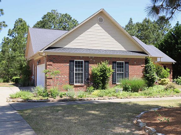 All brick, single level home on picturesque street in Seven Lakes West! Enjoy the perennials in the well-landscaped and private backyard; underground watering can be set to schedule. 3 Season room with E-Z breeze windows not included in sq ft total. Lovely hardwoods, split bedrooms and vaulted ceilings. Meticulously maintained, single owner. Oversized garage. Heat pump w/backup gas furnace that kicks on in low temps. Enjoy the amenities of Seven Lakes West: 800-acre Lake Auman for boating, fishing, swimming, tennis and basketball courts, swimming pool, playgrounds, nature trails, community center and more! Just minutes from Pinehurst. West End Schools!