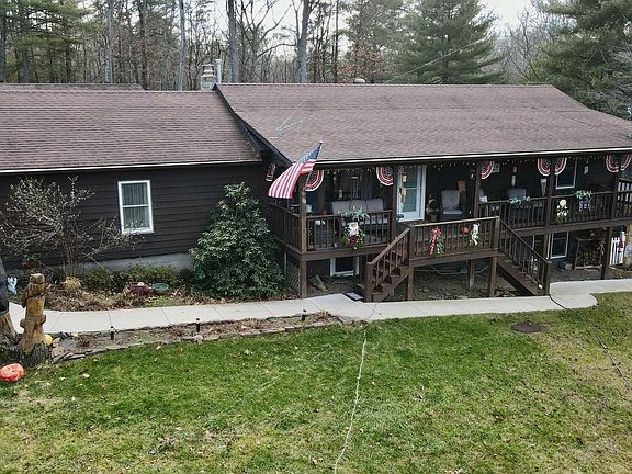 Welcome to your rustic retreat, where serenity and natural beauty converge on a sprawling 10-acre haven. This 4-bedroom, 3.5-bath home offers the perfect blend of rustic charm and modern comfort, with a picturesque pond, meandering stream, and a warm and inviting atmosphere. As you approach, you'll be captivated by the enormous front porch, a welcoming oasis adorned with ceiling fans that create a gentle breeze. It is the ideal spot to unwind, sip your favorite beverage, and immerse yourself in the tranquility of your surroundings. Step inside, and you'll be greeted by beautiful wood floors that add warmth and character to every corner of the home. The family room is a cozy haven, featuring a custom-made La-Z-Boy sectional that invites you to relax and share quality moments with family and friends. The dining room is the perfect setting for cherished family meals, while the breakfast bar area in the well-appointed kitchen offers a convenient space for your morning cup of coffee. With stainless steel appliances and granite countertops, the kitchen is a chef's dream, combining both style and functionality. The main level also hosts the primary suite, a spacious and serene retreat that boasts an attached bathroom, a large walk-in closet, and access to a private deck that overlooks the breathtaking natural beauty that surrounds the property. Additionally, two generously sized bedrooms, another full bath, and a half bath complete the main level, ensuring comfortable living for all. Venture to the lower level, where you'll discover a large room with a corner fireplace, creating the perfect space for a man cave or game room, perfect for unwinding and entertaining. Another bedroom and full bath on this level offer additional convenience and flexibility. The backyard is fully fenced, providing a safe and secure environment for playtime with your pets. Off the side patio, a warm and inviting firepit beckons for stargazing or making s'mores, creating cherished memories under the night sky. Surrounded by 10 acres of mostly wooded land, this home is a sanctuary from the everyday hustle and bustle. For those who enjoy hunting, this property offers an exceptional opportunity. The amazing hunter's shed with a blind is the perfect place to store your gear and strategize before heading out to track the abundant deer and wild turkey that often visit this land. In summary, this rustic 4-bedroom, 3.5-bath home on 10 acres with a pond, stream, and a host of inviting features is the perfect retreat from the busy world. Embrace the tranquil beauty of your surroundings, enjoy outdoor activities, and make unforgettable memories in this unique sanctuary. Don't miss the chance to call this remarkable property your own.