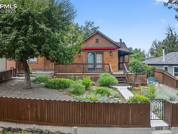 Truly a one of a kind, westside home originally established in the early 1900s. Beautiful architecture and woodwork throughout this unique 3 bedroom, 2 bath (roughed in for a third) rancher in Old Colorado City. Features such as natural wood built-ins, gas fireplace and infra-red sauna complement all the details in this home, along with modern conveniences. Situated with panoramic views of Cheyenne Mountain and Pikes Peak reaching northwest toward the Garden of the Gods. Own a private park-like nature sanctuary with native and perennial xeris landscaping framed with split rail fencing and tube gates. Enjoy the west facing front deck with awning and backyard pergola with outdoor fireplace. Location is close to Old Colorado City restaurants and galleries as well as downtown Colorado Springs. Perched upon a beautiful .37 acre lot in a quiet and private setting.