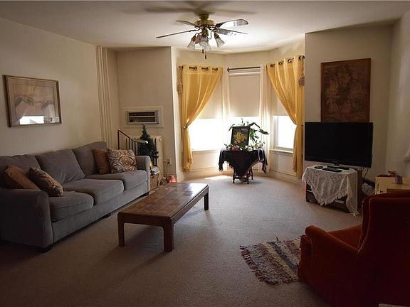 Have the best of both worlds with this magnificently restored historic owner-occupied home and an additional income-producing unit. This finally restored property has beautiful exposed brick walls, an architecturally designed beam which provides an open concept and allows natural light to flood the room. Large living room opens to Dining room. Large eat-in kitchen with ceramic tile, modern cabinetry and detailed copper backsplash. A convenient bedroom/den with laundry. Private master bedroom and additional guest bedroom grace the third floor. The first floor is an income producing apartment with living room, dining area, bedroom, and nice sized galley kitchen. Beautiful front and rear porches are perfect for quiet evenings. Low taxes combined with new roof, water heater, front sidewalks and many upgrades. Private rear yard and an oversized one car detached garage. This property is the perfect combination of luxury and inexpensive living. Long-term tenants on first floor.