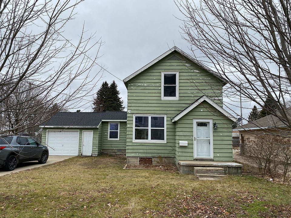 LOOKING FOR A NEW PLACE TO HANG YOUR HAT? This conveniently located two story home is ready for you to move in the day of closing! Living room, dining and kitchen all open to each other, bedroom on main floor along with full bath plumbed for stackable laundry make up the main floor. Upstairs is two more bedrooms - one of them quite spacious! Basement great for storage along with potential family room area. Fenced in back yard, natural gas forced air heat, and cable internet round out the package! This house will not qualify for RD/FHA/VA loans due to peeling paint on the exterior. Interior has been freshly painted. Priced right at $89,900.