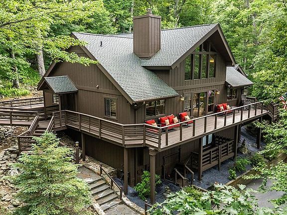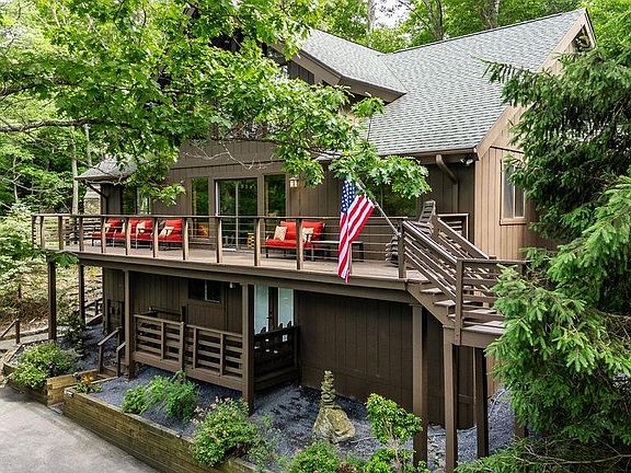 A singular opportunity to own a one-of-a-kind property at Wintergreen. The only large home on the mountain that offers a ski-in/ ski-out location, sits on a double lot with two separate driveways, offers an incredible, very private outdoor living area and spa, and has never been rented. Enjoy beautiful mountain views all year round and stunning sunrises, ski slopes, and Shenandoah Valley views in the winter. Some of the best hiking Wintergreen has to offer is a convenient walk away. Thousands of square feet of decking and a private outdoor living area featuring a pizza oven, an outdoor fireplace, and a TV. The Spa has a post & beam cover with a copper roof. The home has an open floor plan, perfect for entertainment. A gorgeous A-frame Great room with a floor-to-ceiling stone fireplace, an all-new kitchen, and a year-round screened porch. Enjoy one-floor living with step-less entry. The main level features two primary suites, one with a private sauna. The home sleeps 13 people comfortably, with privacy for all. Amazing custom ski/ snowboard storage in the walk-out basement. Ample storage space throughout. Extensive renovations, inside and out. All new exterior stain in 2023. Do not miss this rare offering.