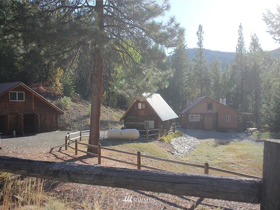 Time for you to enjoy approx. 10 acres adjoining Nat'l Forest land. Great hunting from property and only 15 minutes to Twisp! New 2-20 power hook up for RV use, upgraded electrical panel w/ underground electrical to main panel. Private well w/ 500-gallon reservoir gravity feed. Lg 2 car shop w/ loft & potential sleeping area. Main 1 bedroom log cabin w/ bonus loft w/ Propane heat, wood stove, gas range, microwave, refrigerator, propane on demand hot water tank, updated bath w/ new shower, new kitchen flooring, new living room carpeting, fully furnished. 16' x 8 covered firewood storage, septic system rated for 3-bedrooms. Bunkhouse sleeps 5 with propane heat. Property well maintained and groomed.