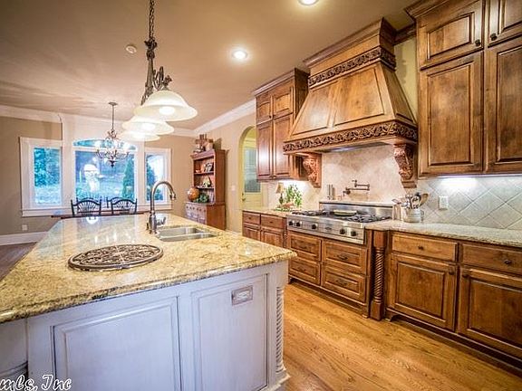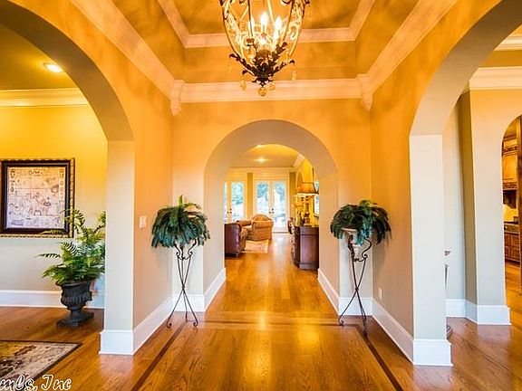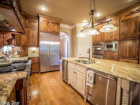 Custom forever home w/ great views. Energy Efficient+Chenal Elem. New: HVAC+Security+Tankless H2o. Tall entry w/ hardwoods +Kirtz shutters. Office+Tray-ceiling dining. Gourmet kitchen: Granite island +travertine b.splsh +walk pantry +Viking apps (convection 2oven+gas stove w/Ventahood). Spacious living: French-doors to stone terrace w/evening shade, backs to green. Tall&Private Master: main lvl -his/her clsts +travertine. 3 Beds main lvl. Up: Bonus rm +guest suite. Generator. Util<$250/month. Roof'12.