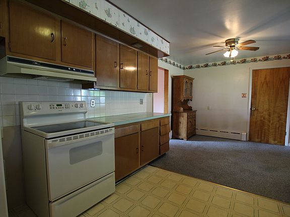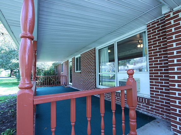 Live in this classic brick ranch on a quiet Millheim side street and walk to the Elk Creek Caf! The one-owner ranch has 3 bedrooms and a full bath on the main level and another full bath downstairs in the unfinished basement. The large living room has a brick fireplace and sliding doors out to the deck. The galley kitchen is open to the dining room from which a side door leads out through the enclosed breezeway to the one-car garage. Enjoy relaxing on the large covered front porch or sit on the back deck or patio to watch the sun rise. Landscaping includes lush greenery and mature trees - even some apple trees in the backyard for fruit picking. This home is ready for someone to move right in and add their taste and touch to it with some modern upgrades. Is that someone you?