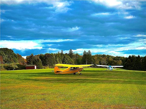 Stunning and sophisticated custom contemporary home featuring soaring ceiling, open floor plan and quality craftsmanship. Unicorn Alert Home Located in Connecticuts Only Fly-in neighborhood with only 10 homes. Private 2,000' grass runway for the neighbors and wildlife to enjoy. Included 42'x32' insulated outbuilding/hangar with 11' ceilings, rollup single door for pull in capabilities of an airplane 9ft 8in. This versatile building can be used for the car enthusiast and will hold up to 8 cars. Inside the home you will find a flexible floor plan with 1st floor master featuring sitting room, fireplace, large bath, 2 huge walk-in closets. Flex space in the upstairs and downstairs levels offering options for home gym, office space, playroom, or crafting. Thoughtfully designed kitchen with large pantry, custom cabinetry, stone counter tops with ample counter space and room to entertain. Other added bonuses at this home new mechanicals, new central air conditioning and attached 3 car garage with bonus tandem space behind 3rd bay for sports car or additional storage. Nestled across the street from the beautiful Salmon River State Forest, well-known for its covered bridge and recreational opportunities. Conveniently located with easy access for commuting via route 2, shopping, rails to trails and the medical center. Dont have a plane Opportunity knocks - this hanger may be an income opportunity for you! Lots of options - Bottom Line this home is a must see!!