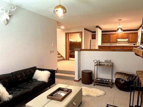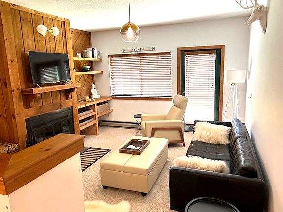 Cozy 1 bedroom plus bunk room steps from the Sachem Trail at Okemo Trailside. Walk into the mudroom and drop your gear off before heading down the stairs to the open kitchen/living/dining. The primary bedroom has access to the full bath (along with a hall entry to the bathroom) and a bunk room with built-in beds for additional guests. Wood-burning fireplace to keep you warm on those cold winter evenings along with a walk out to the outdoors. The building has new siding and roofing all making a crisp and clean exterior. Summer pool and tennis courts are a bonus for summer fun!