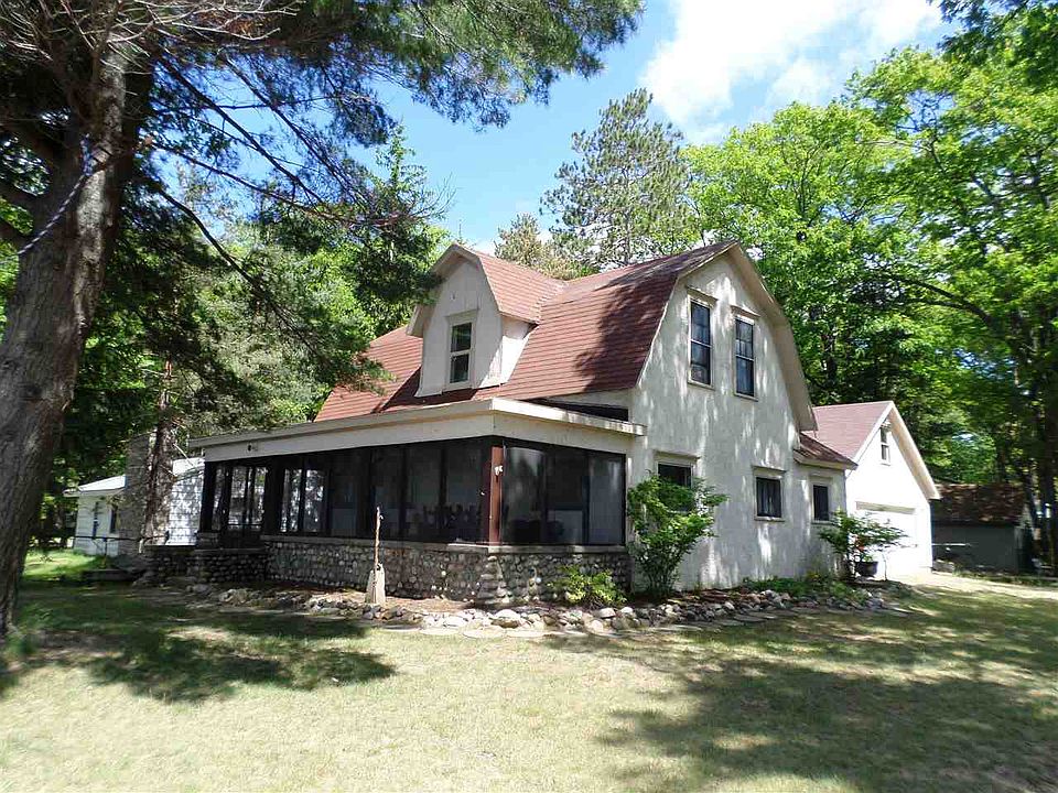 Lakefront! Amazing 4 bedroom 2 bath home with 90 feet of water frontage. Hardwood floors, cherry wood staircase banister with fully functional brick fireplace and cherry wood hearth. this 1922 built home includes the dock, 3 seasonal screened in porch built from stones collected from its water front, water side. A large fire pit for out side enjoyment. There is a separate dining area with pass-thru window off kitchen. All the windows are the original live, lead glass. Foyer entrance. Additional storage under stair case. Landscape grounds. Sandy shore line. Stone walkway. Detached garage also has a loft, window and staircase. Peaceful and serene area. Looking to purchase a year round home or recreational home to escape your day-to-day life, or to invest in a rental this property can easily accommodate your family, tenants or guests, property converts into bed and breakfast.